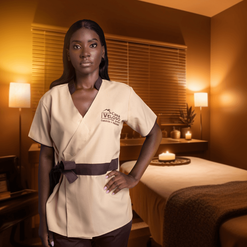 O Uniforme de Esteticista da Casa Veloso foi desenvolvido para profissionais que valorizam conforto, elegância e apresentação profissional, garantindo uma imagem cuidada em salões, clínicas e centros de estética.
